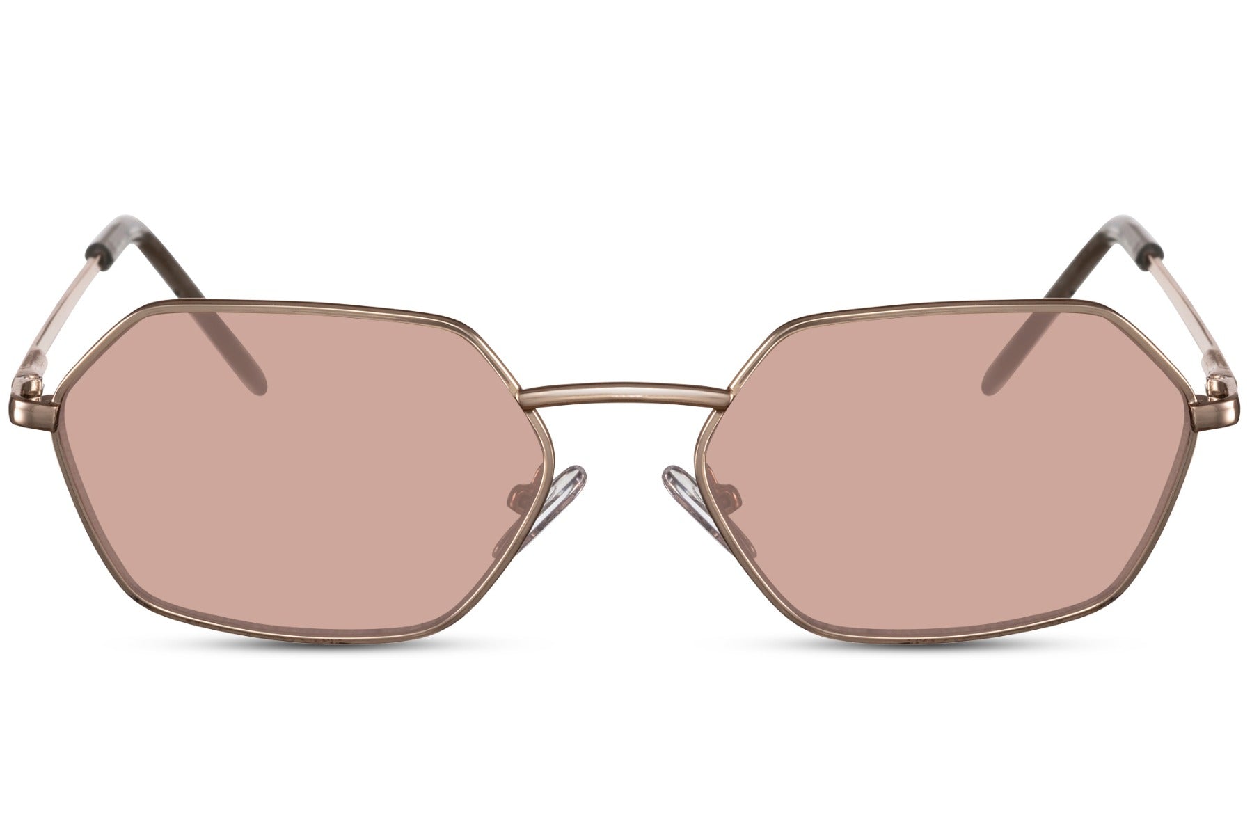 The Spain Sleek Geometric Sunglasses are built for both travel and everyday use. Gold and silver frames available, with black, brown, and purple lens colour options.
